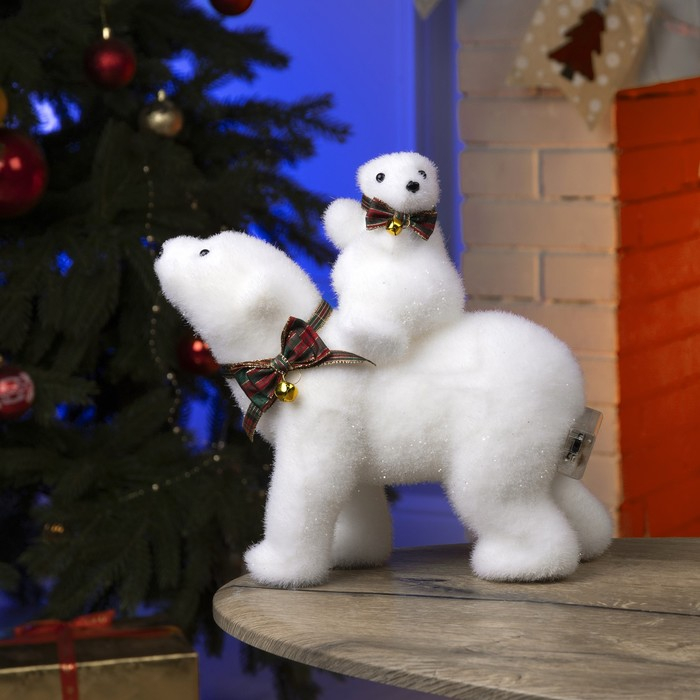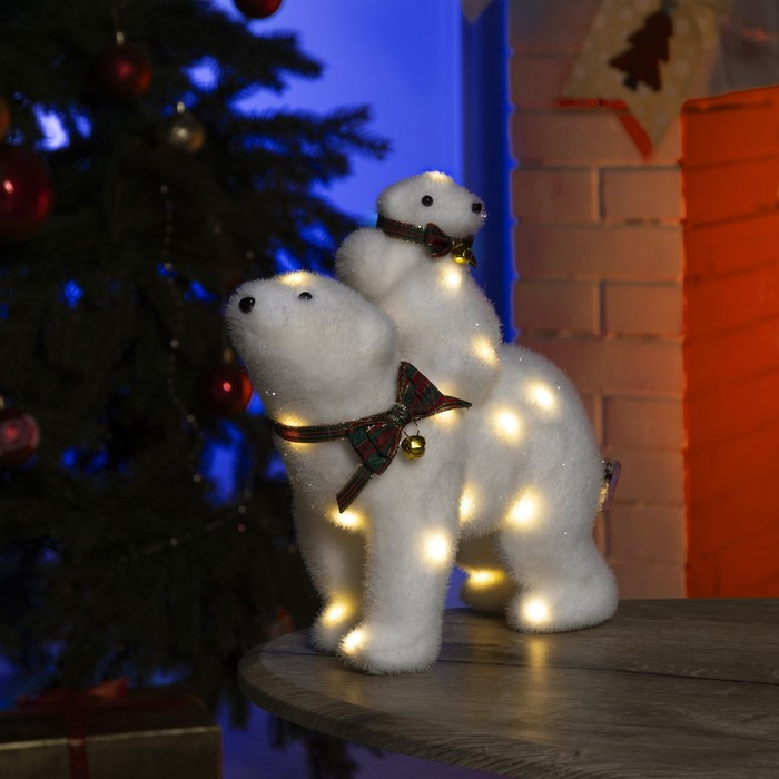 Светодиодная фигура «Медведица и медвежонок» 27 × 26 × 12 см, флок, батарейки ААх2 (не в комплекте), свечение тёплое белое