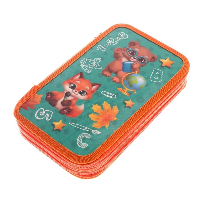 Пенал 2 секции, 125 х 205 х 40 мм, Calligrata 30П26/2 "Зверята", ламинированный картон