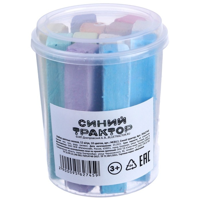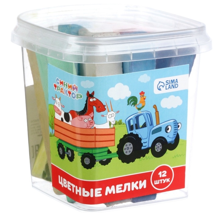 Набор цветных мелков Синий трактор, 12 штук, 10 цветов