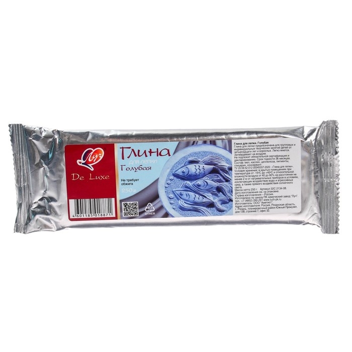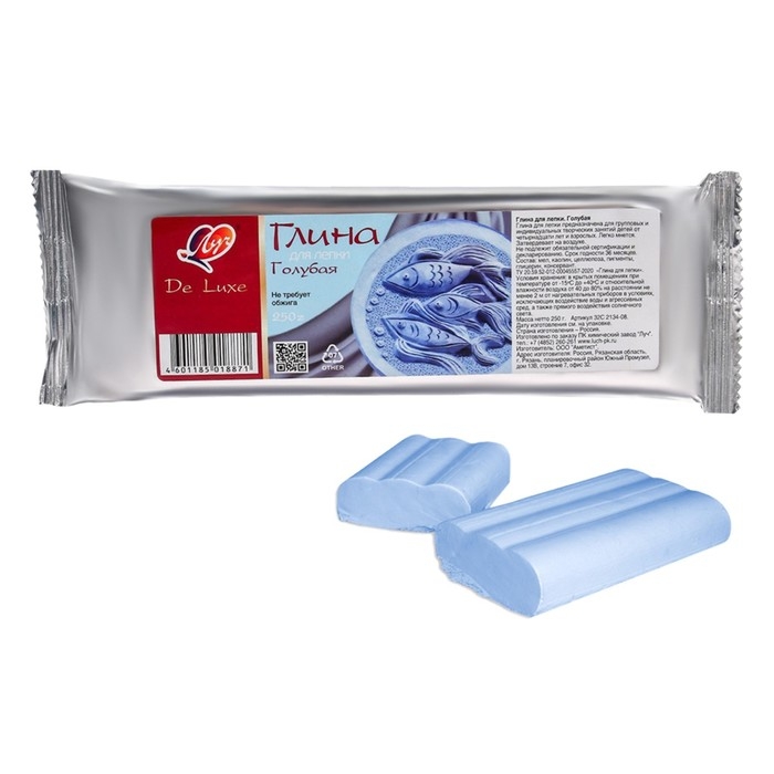 Глина для лепки 250 г, "Луч" De Luxe, не требует обжига, голубая