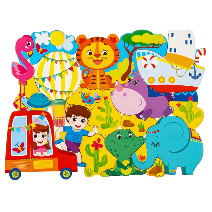 Перед началом игры предложите ребёнку назвать все элементы картинки, их отличительные черты. Затем поместите фигурки на соответствующие места. Чтобы малышу было интереснее, придумайте захватывающую историю (как зовут зверят, куда они все идут и т.д.).