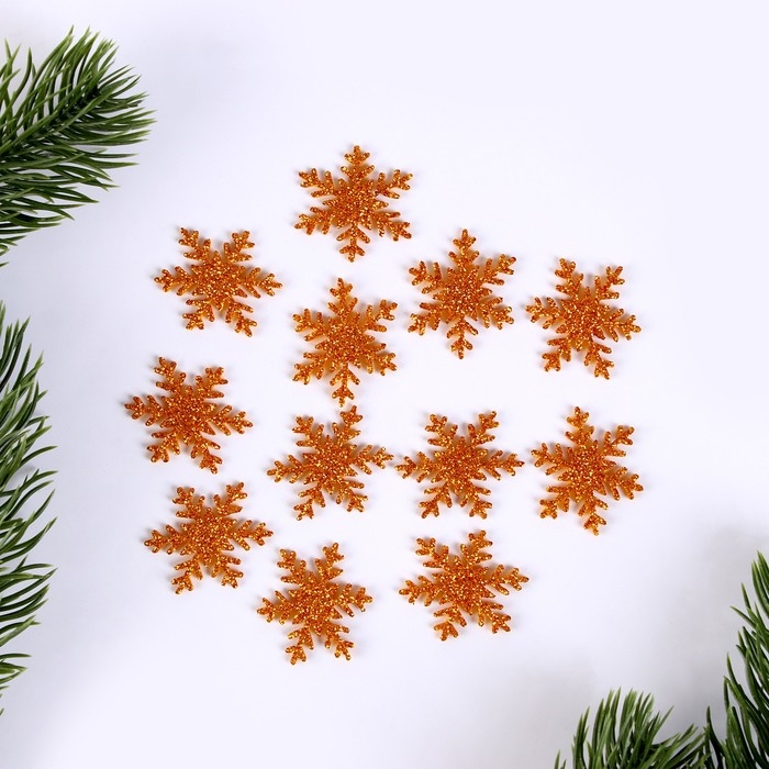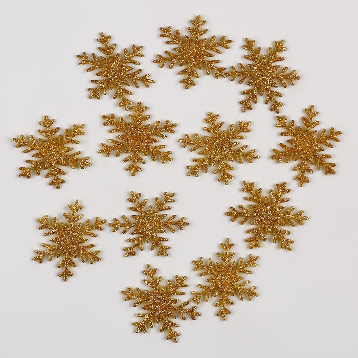 Новогодний набор для декора «Снежинки» 12 шт., цвет золото