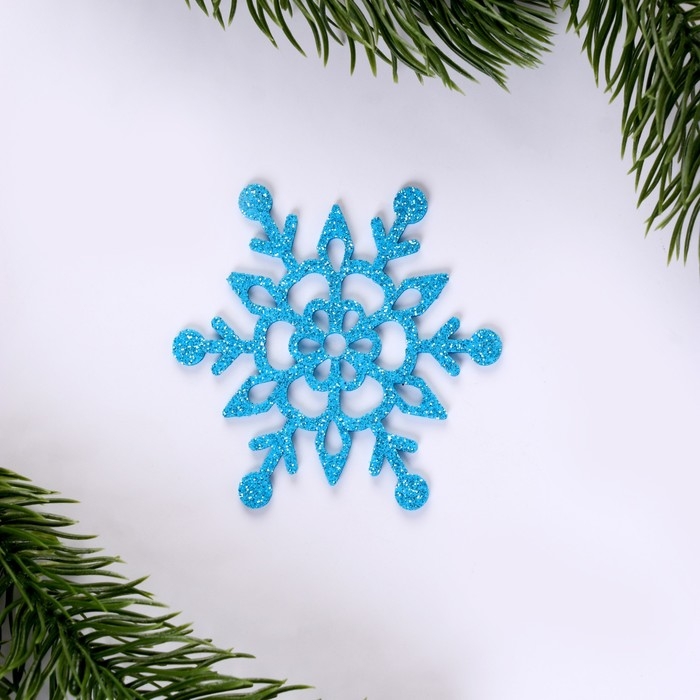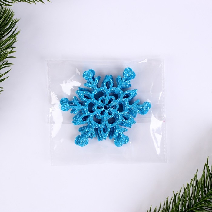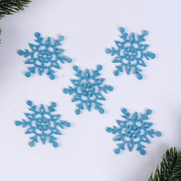 Новогодний набор для декора «Снежинки» 5 шт., 7 см, цвет голубой