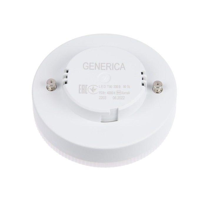 Лампа светодиодная GENERICA T80, 15 Вт, таблетка, 4000 К, GX53, 230 В, LL-T80-15-230-40-GX53-G