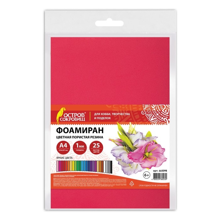 Фоамиран цветной А4 1мм 25л*25цв, ОСТРОВ СОКРОВИЩ, яркие цвета 665098