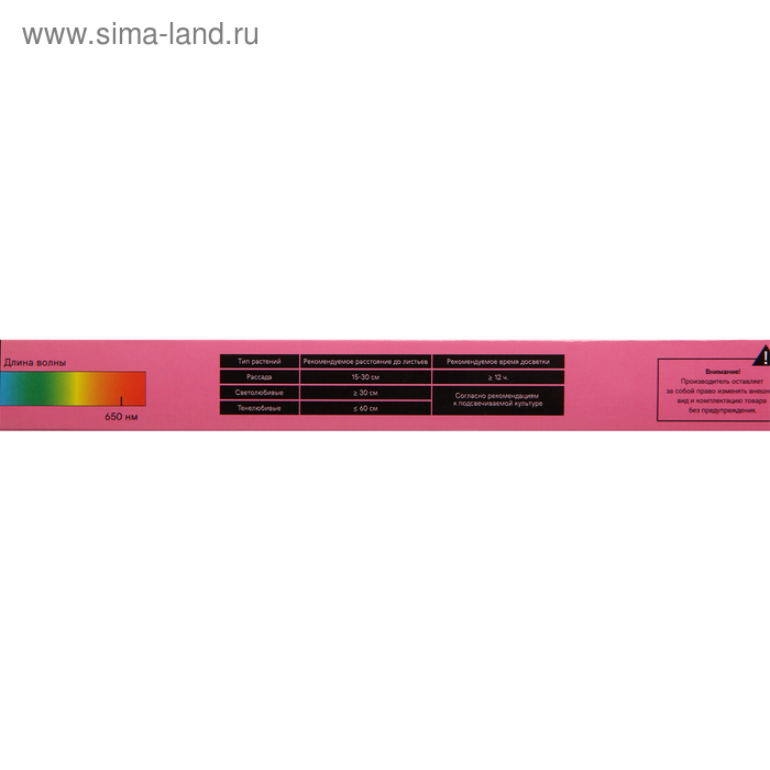 Фитосветильник светодиодный "ФитоЛето", 30Вт, 1150мм, IP40, 220В, полноспектральный, с выкл.