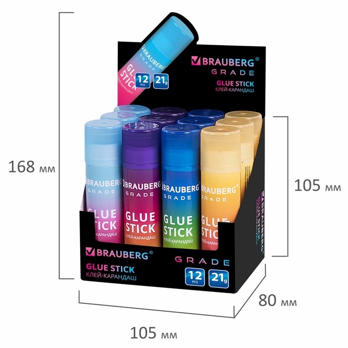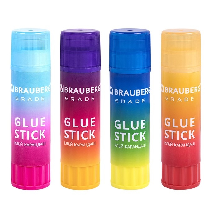 Клей-карандаш PVP 21г BRAUBERG GRADE, в градиентном корпусе, ассорти 271247