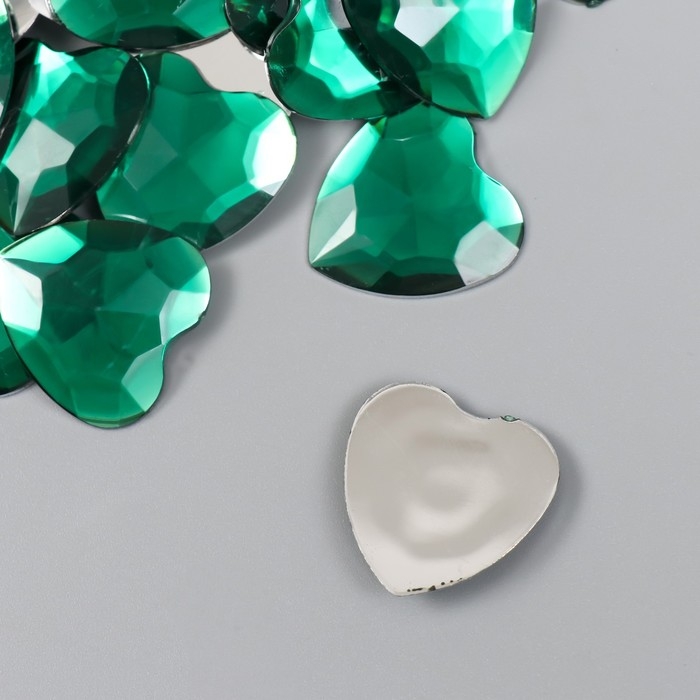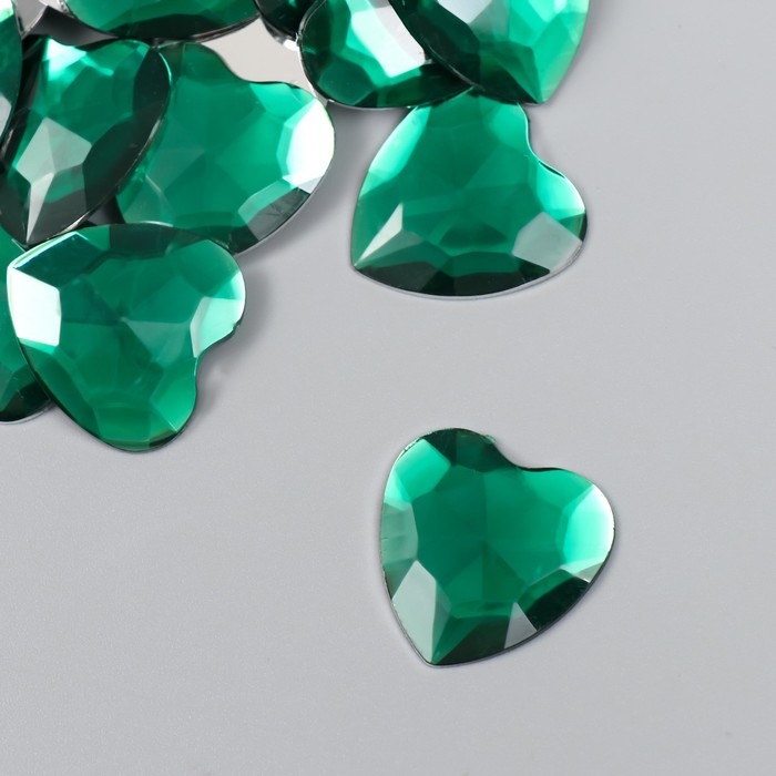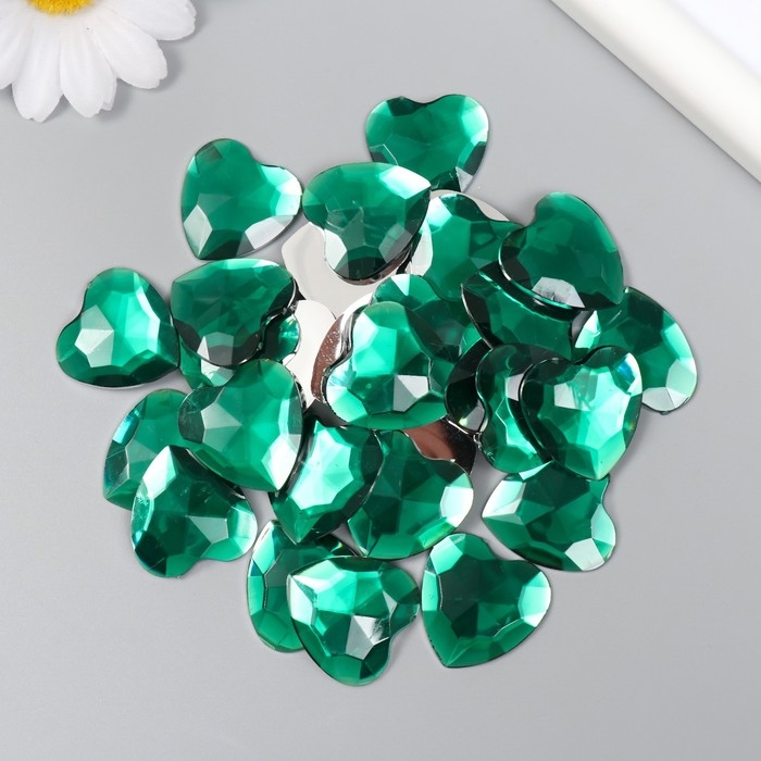 Декор для творчества пластик "Стразы сердце. Тёмно-зелёный" набор 30 шт 2,5х2,5 см
