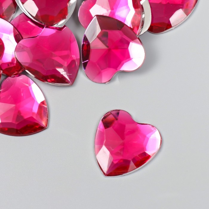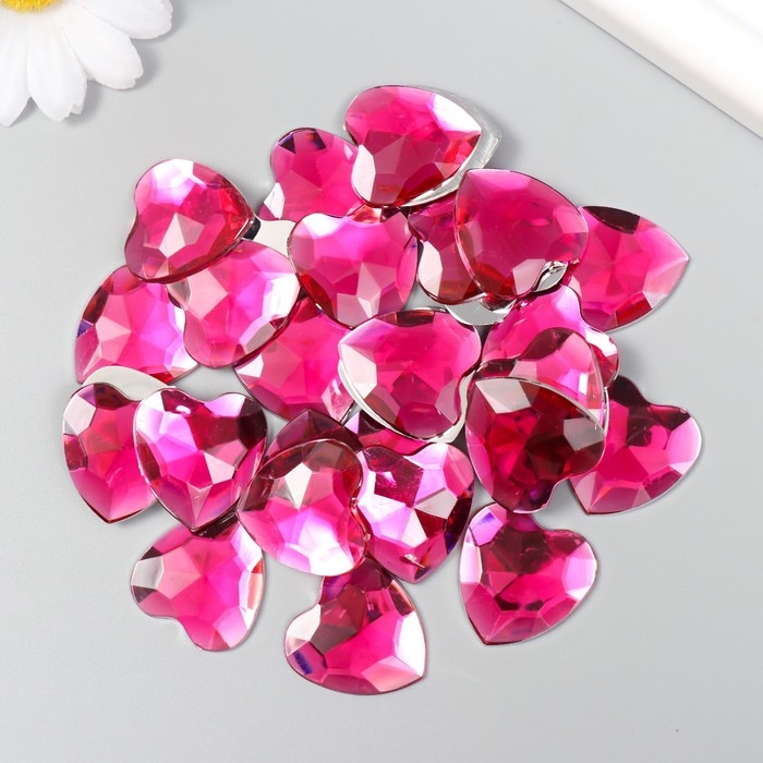 Декор для творчества пластик "Стразы сердце. Фуксия" набор 30 шт 2,5х2,5 см