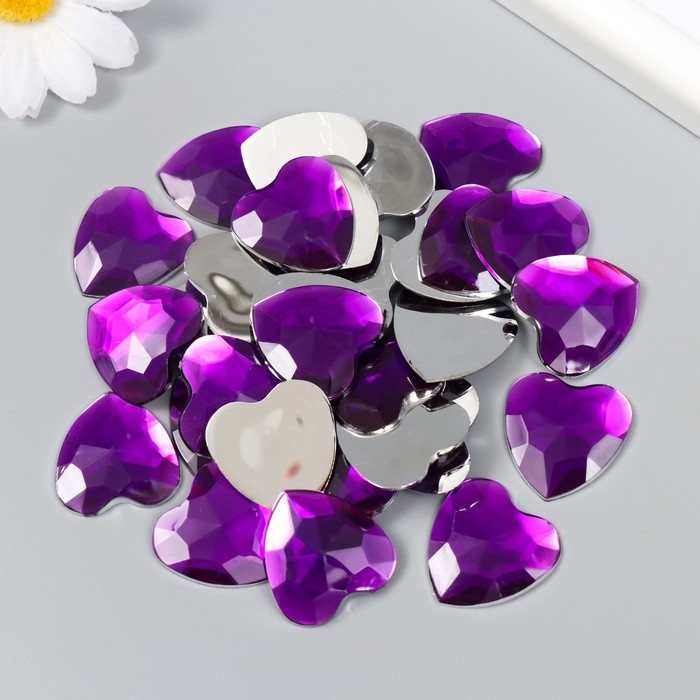 Декор для творчества пластик "Стразы сердце. Тёмно-фиолетовый" набор 30 шт 2,5х2,5 см