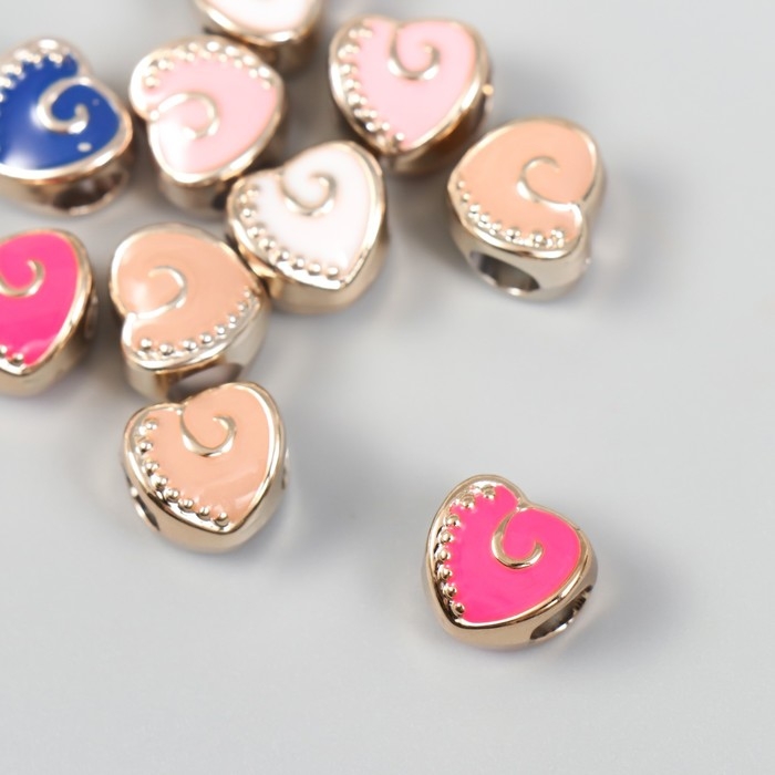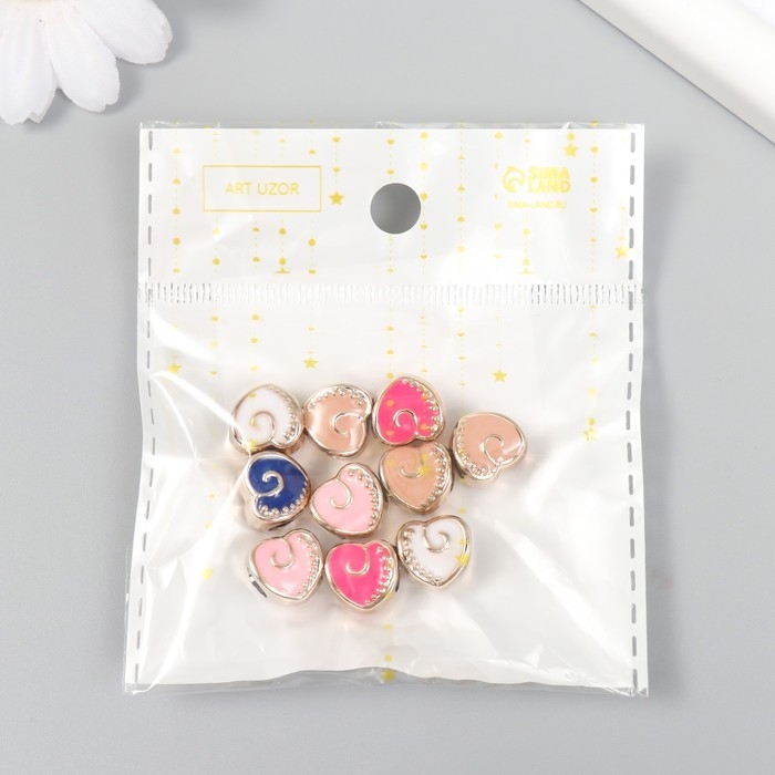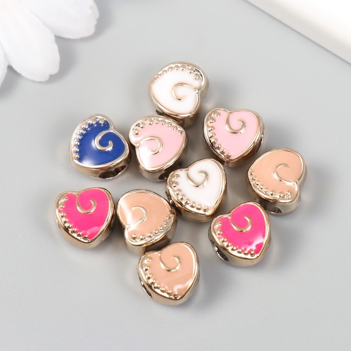 Бусины для творчества пластик "Сердечко с завитком" МИКС набор 10 шт 1,1х0,8х1 см