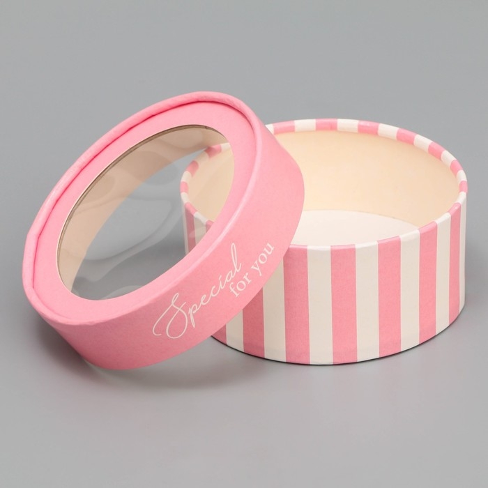 Коробка для макарун, кондитерская упаковка тубус с окном For you, 12 х 12 х 5 см
