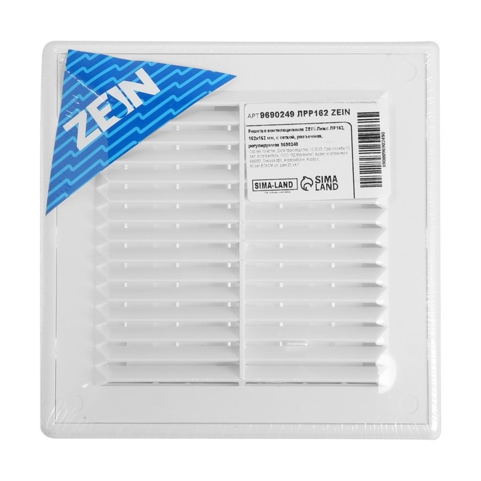 Решетка вентиляционная ZEIN Люкс ЛРР162, 162 х 162 мм, с сеткой, разъемная, регулируемая