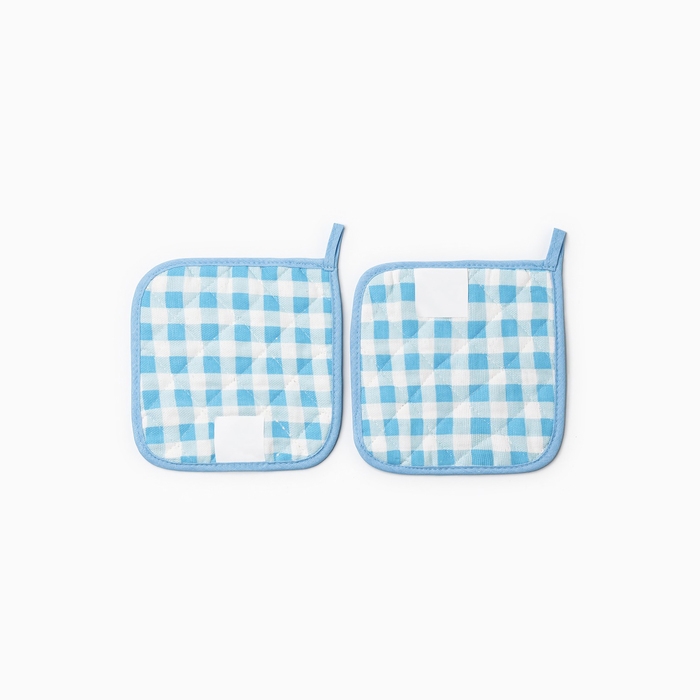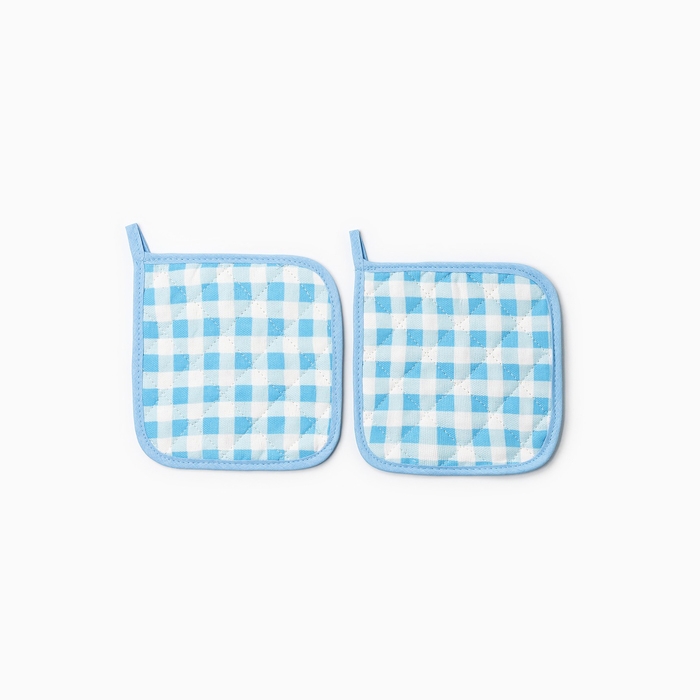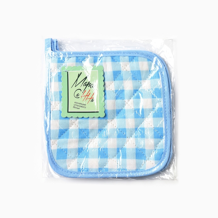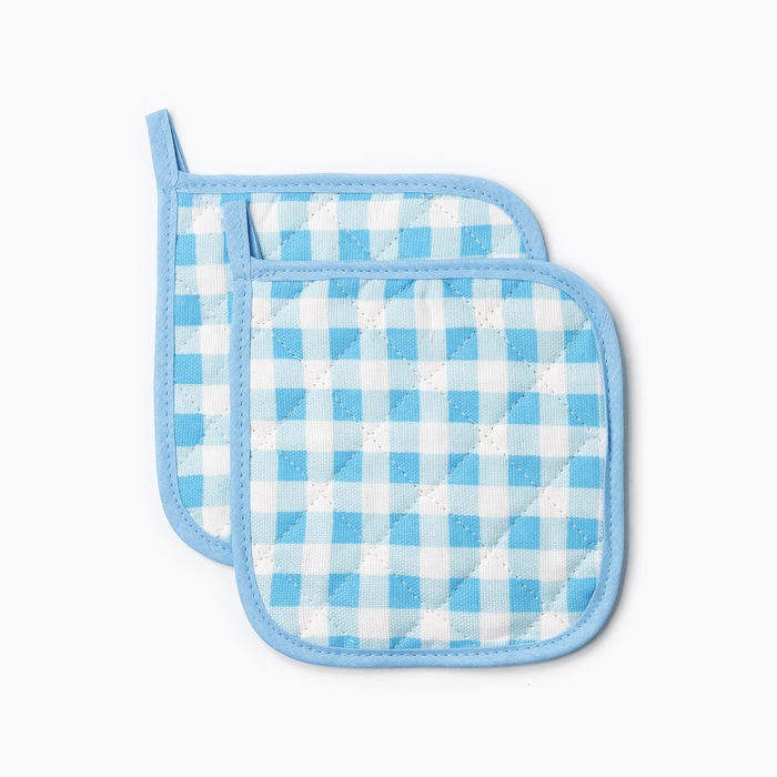 Набор прихваток Мари Санна Клетка 2 шт, цвет голубой, рогожка, 100% хлопок