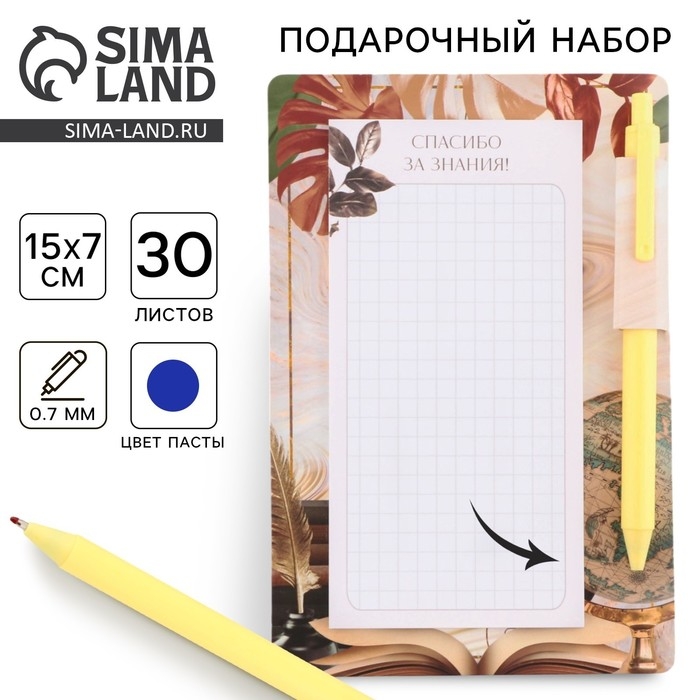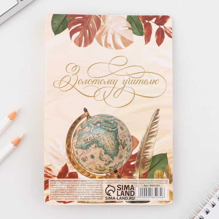 Стикеры с липким слоем, ручка синяя 0.7 мм, шариковая «Золотому учителю», 30 листов