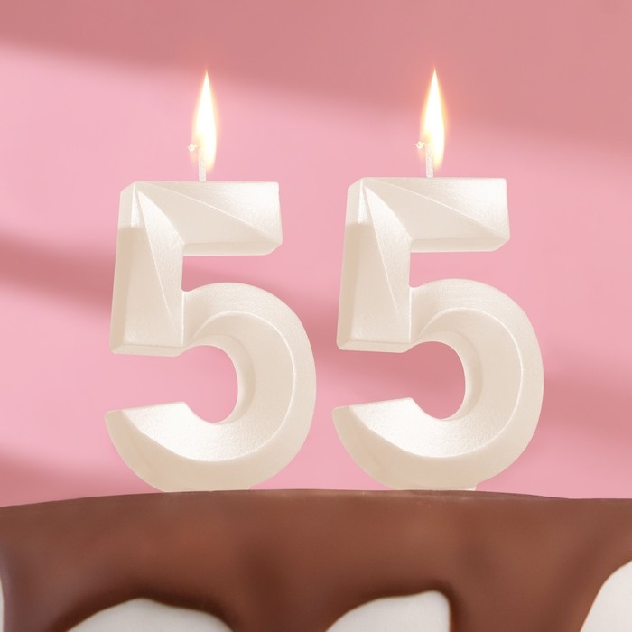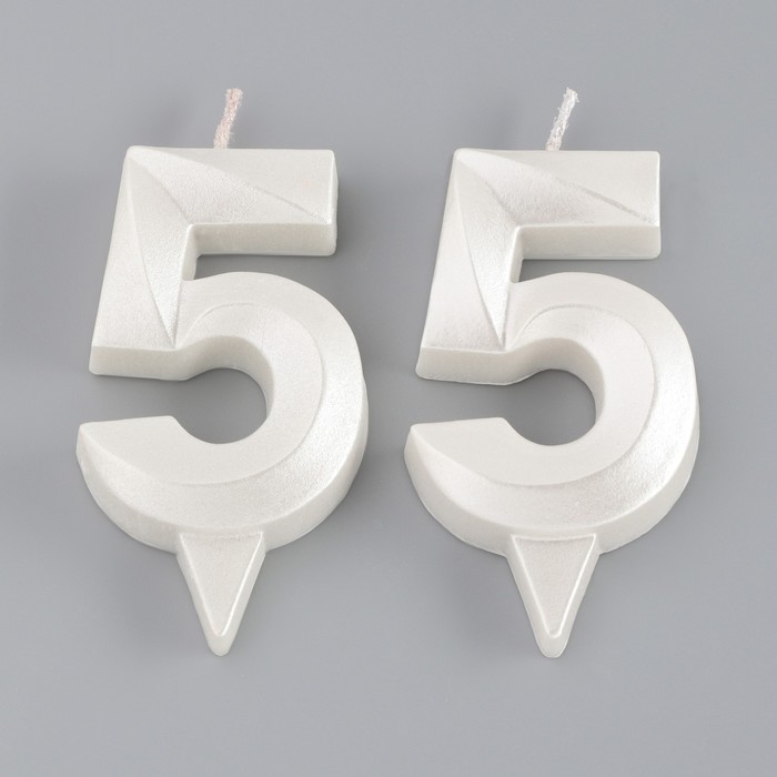 Свеча в торт юбилейная "Грань" (набор 2 в 1), цифра 55, жемчужный, 6,5 см