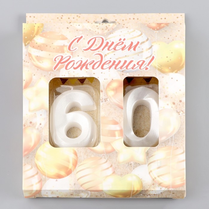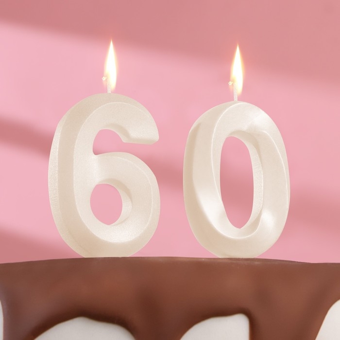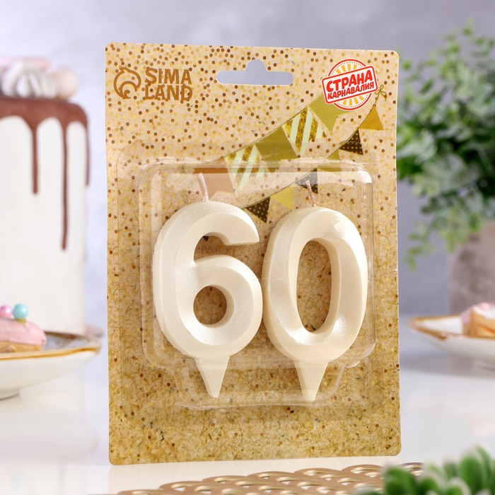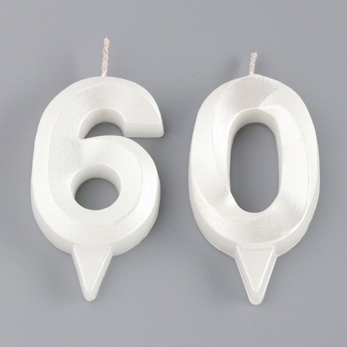 Свеча в торт юбилейная "Грань" (набор 2 в 1), цифра 60, жемчужный, 6,5 см