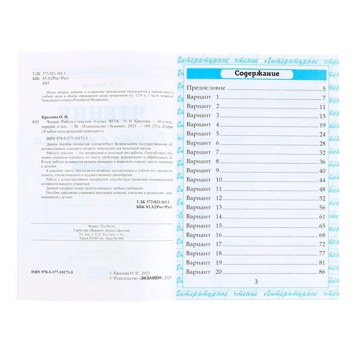 Работа с текстом «Чтение», 4 класс, Крылова О. Н., 2024