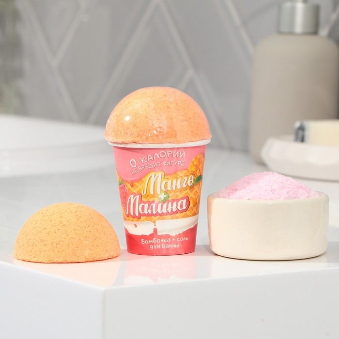 Подарочный набор косметики «Манго и малина», соль для ванны 145 г и бомбочка для ванны 60 г, аромат манго и малины, BEAUTY FОХ
