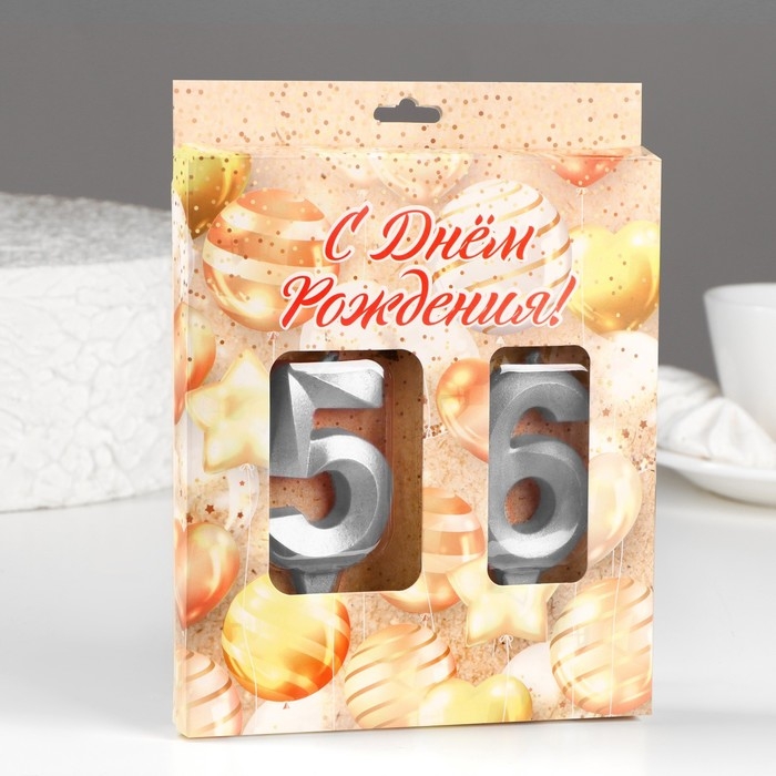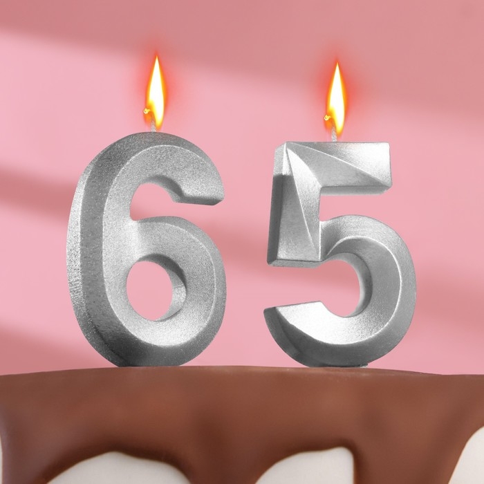 Свеча в торт юбилейная "Грань" (набор 2 в 1), цифра 65 / 56, серебряный металлик, 6,5 см