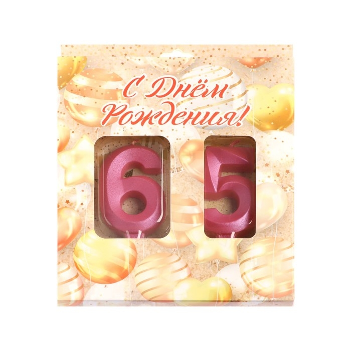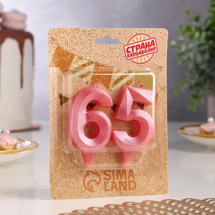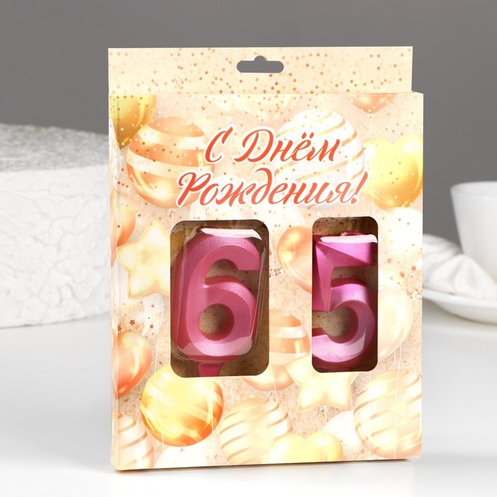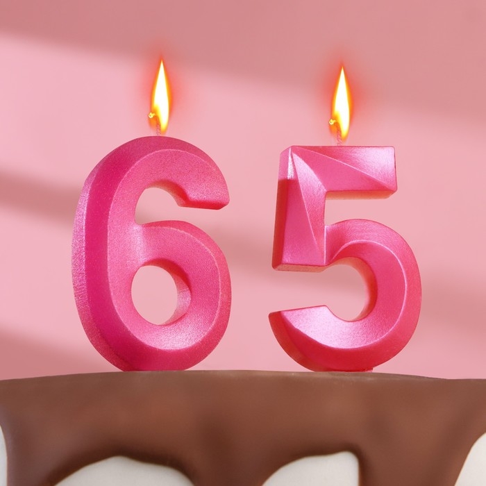 Свеча в торт юбилейная "Грань" (набор 2 в 1), цифра 65 / 56, розовый металлик, 6,5 см