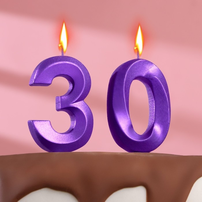 Свеча в торт юбилейная "Грань" (набор 2 в 1), цифра 30, фиолетовый металлик, 6,5 см
