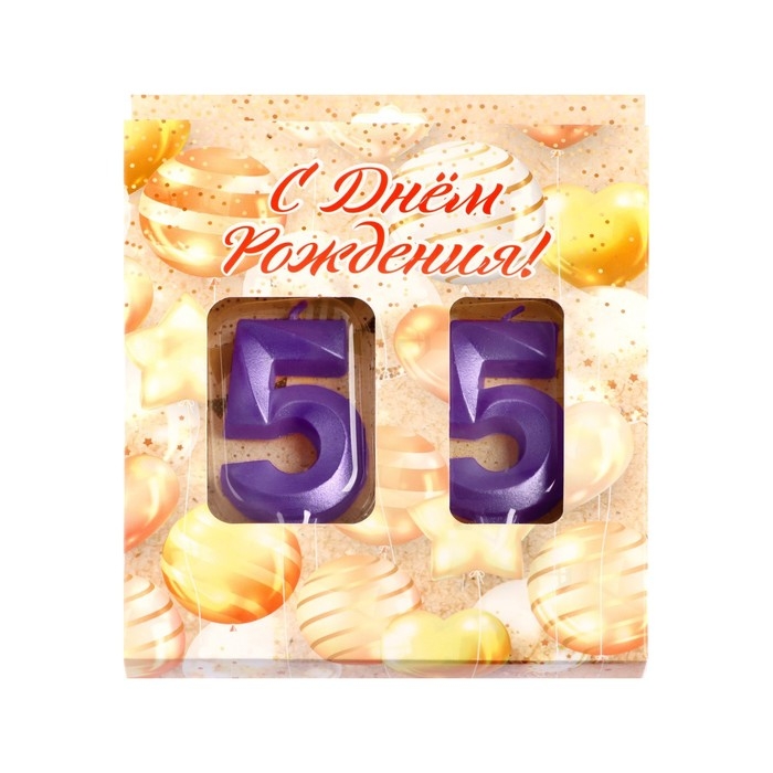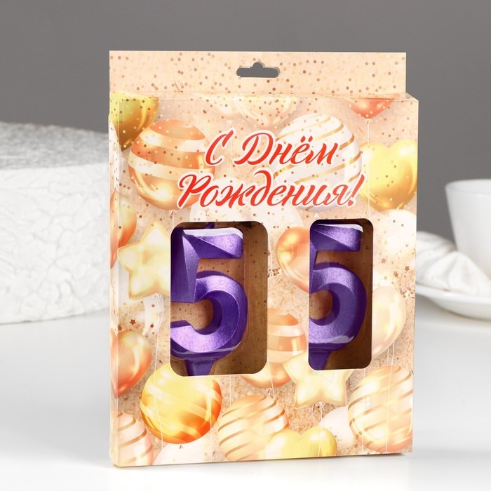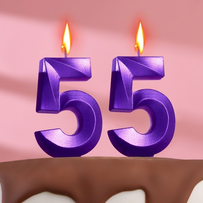 Свеча в торт юбилейная "Грань" (набор 2 в 1), цифра 55, фиолетовый металлик, 6,5 см