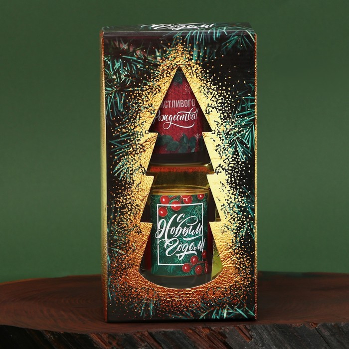 Свечи в стакане новогодние «Новый год: Благополучия в Новом году», набор, 2 шт., аромат еловые шишки