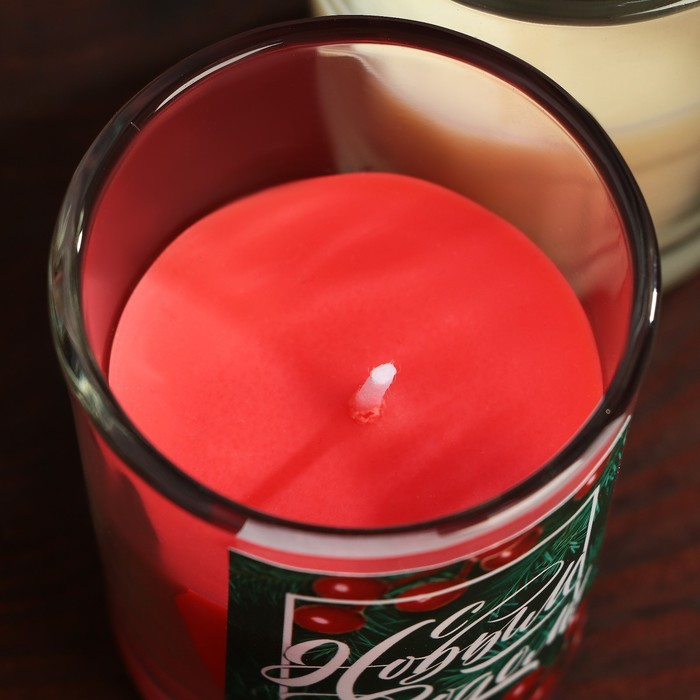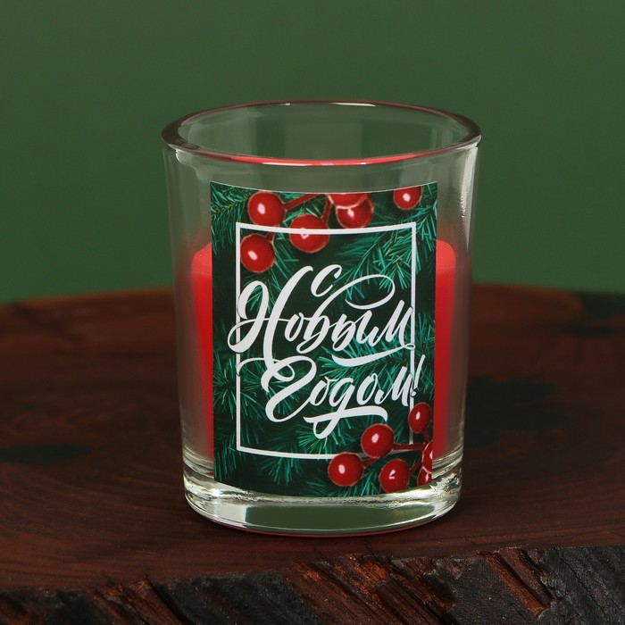 Новогодние свечи в стакане (набор 2 шт.) «Новый год: С Новым годом!», аромат ваниль