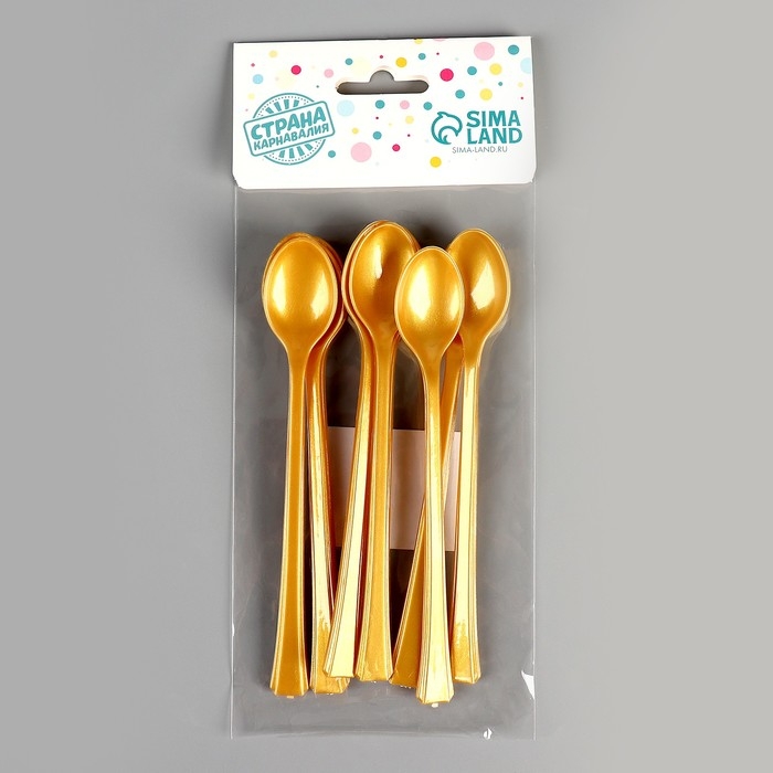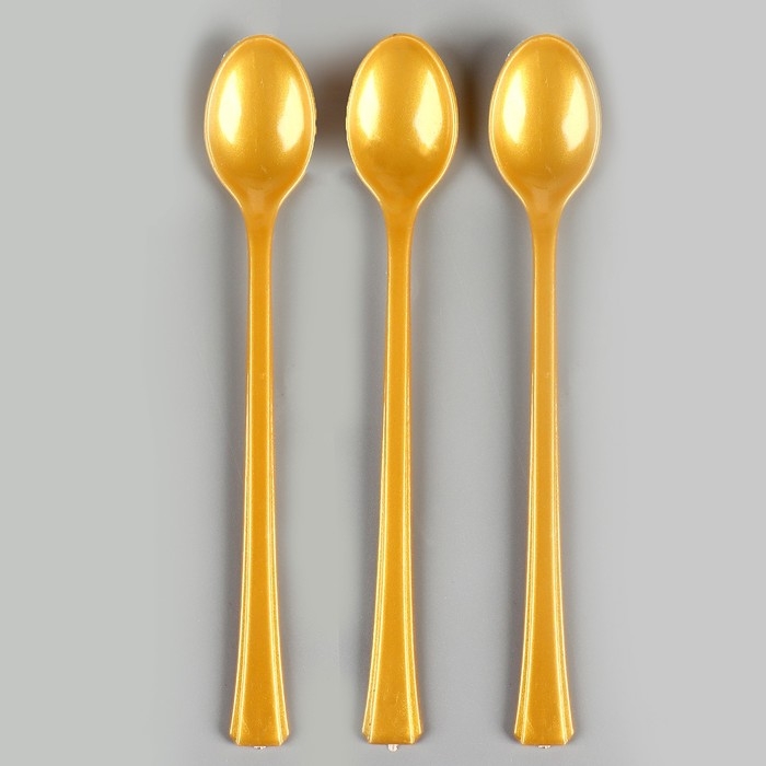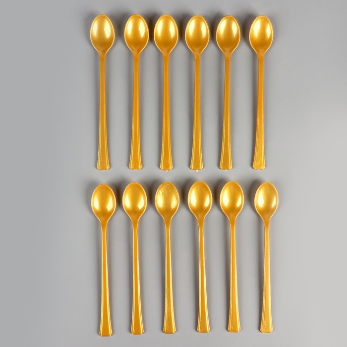 Ложки пластиковые, в наборе 12 штук, цвет золото