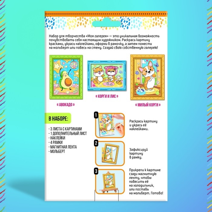 Набор для творчества из серии «Моя галерея» — это уникальная возможность почувствовать себя настоящим художником. Ведь в комплекте есть мольберт и рамки для будущих шедевров!