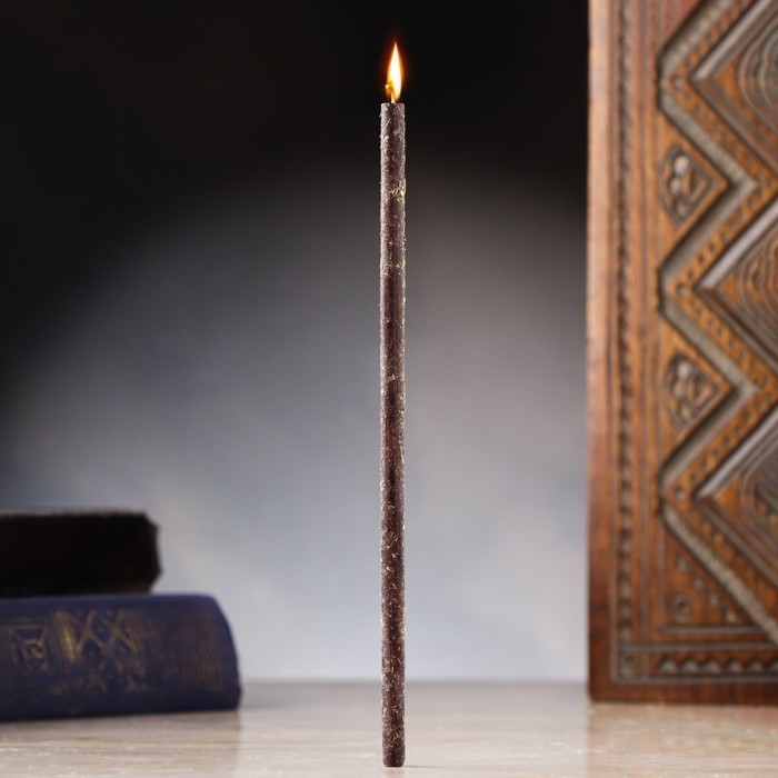 Свеча магическая восковая "Изгнание нечисти и негатива", с базиликом, 16х0,6 см, черный
