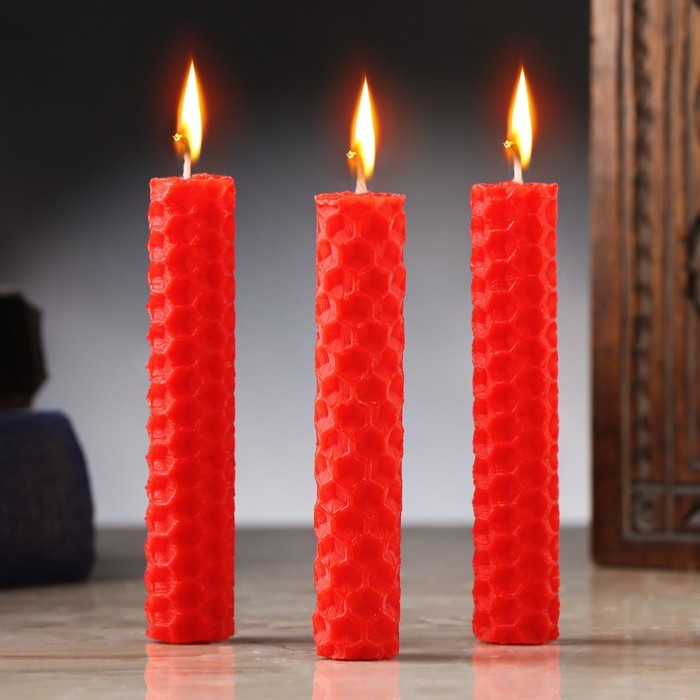 Набор свечей из вощины "Любовь и сила" , 3 шт, 8х1,7 см, 45 мин, красный