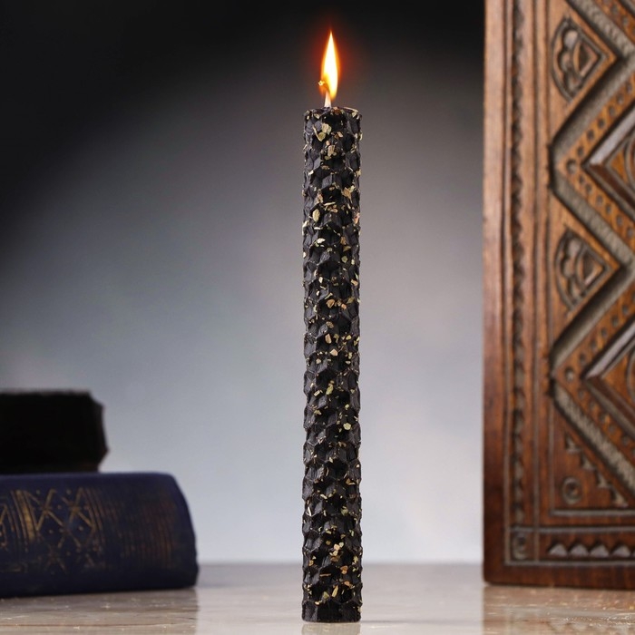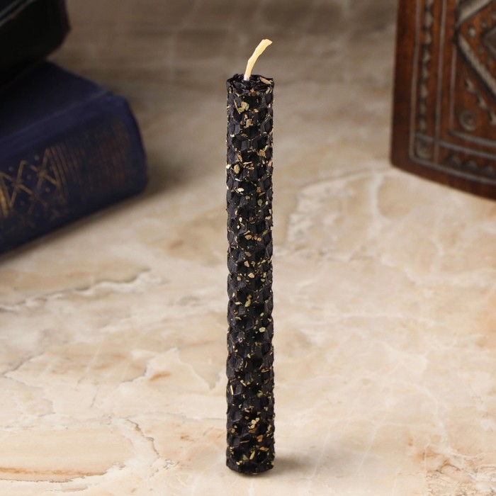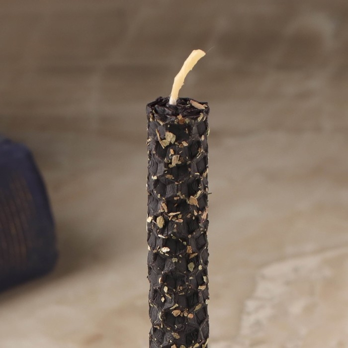 Свеча из вощины с базиликом "Привлечение удачи и чистка от негатива", 13х1,7 см, 1 ч, черный