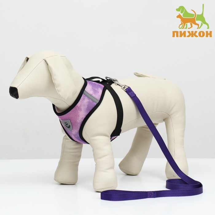 Комплект мягкая шлейка, поводок 120 х 1 см с вертлюгом, S, ОШ 26-67 см, ОГ 26-67 см, фиол