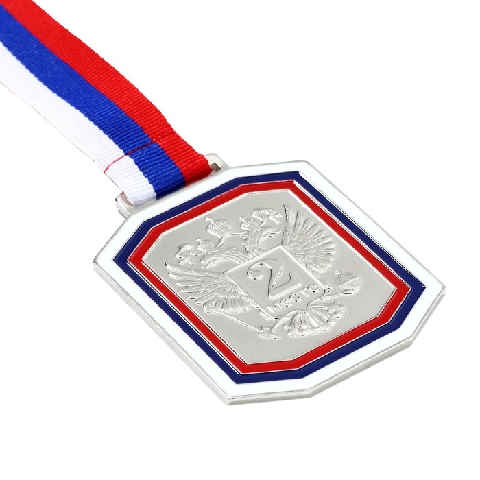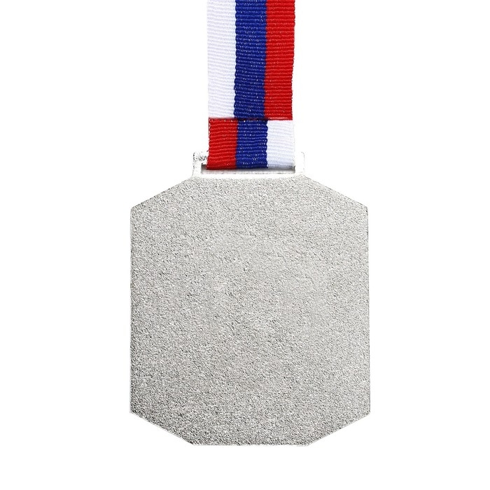 Медаль призовая 002, триколор. Цвет серебро. С лентой. 6 х 7 см