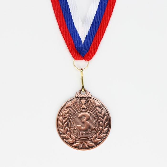 Медаль призовая 004, d= 5 см. 3 место. Цвет бронза. С лентой