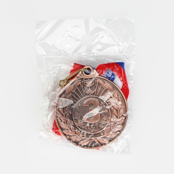 Медаль призовая 043, d= 4 см. 3 место. Цвет бронза. С лентой