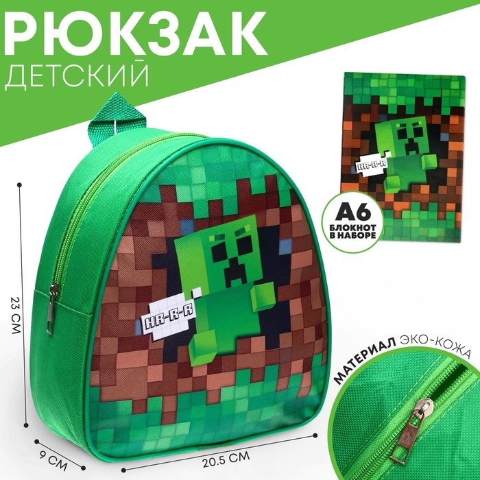 Рюкзак детский для мальчика «Пиксели», 23х20,5 см, + блокнот