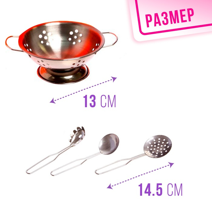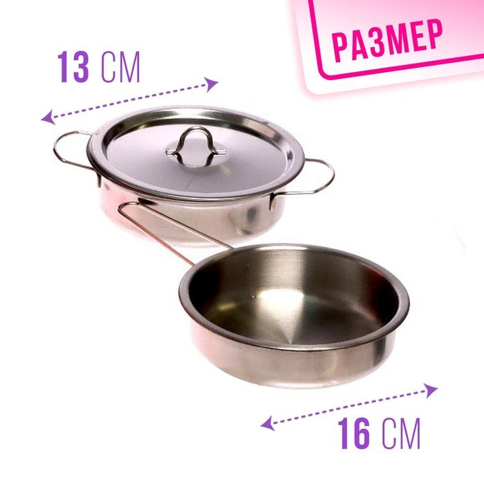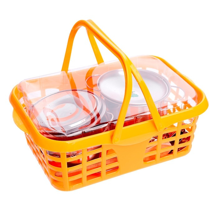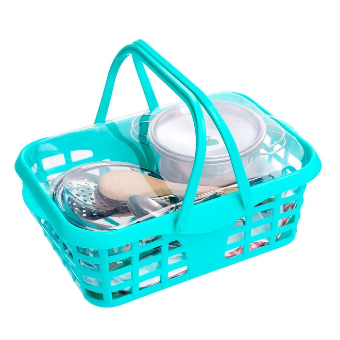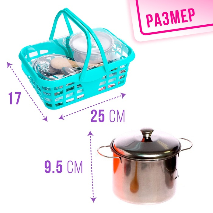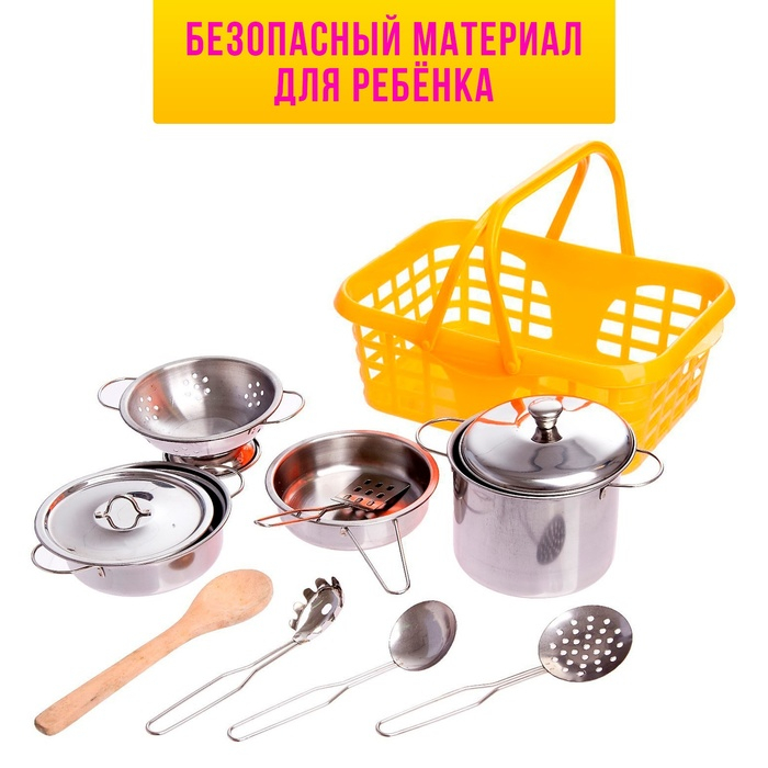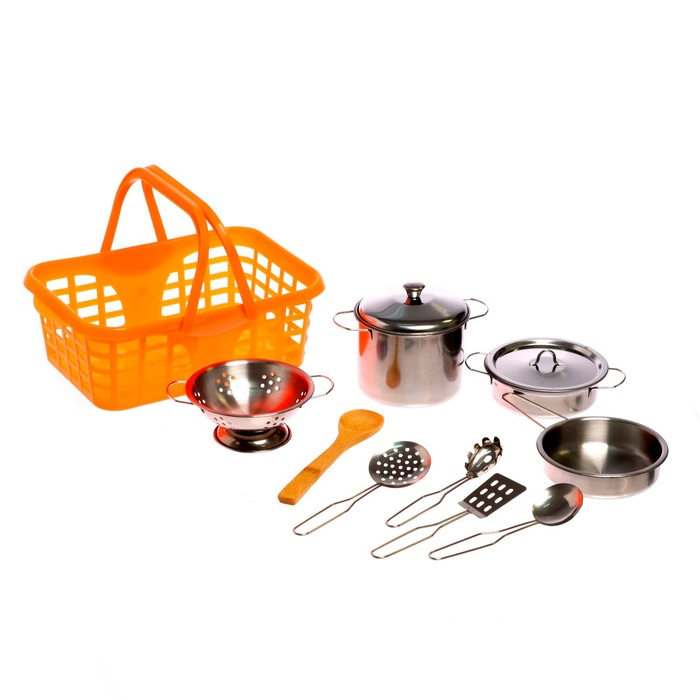 Набор металлической посудки «Супер Шеф», с фартуком и колпаком, в корзинке, МИКС