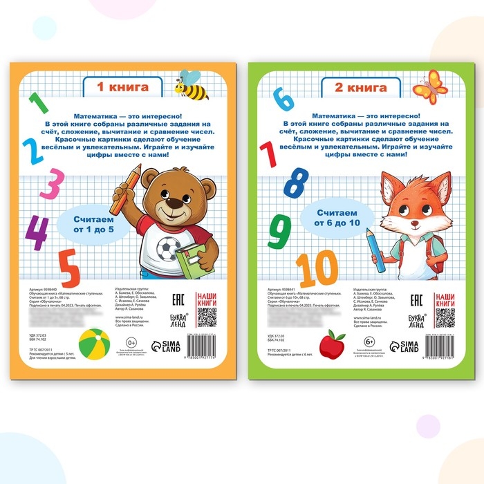 Набор обучающих книг «Математические ступеньки. Учим цифры от 1 до 10» разработан для дошкольного обучения малышей с 5 лет. В них собраны интересные задания на проработку разных навыков. Выполняя упражнения, ребёнок познакомится с числами от 1 до 10, а примеры и задачки помогут ему в доступной игровой форме закрепить простейшие математические действия в пределах 10.