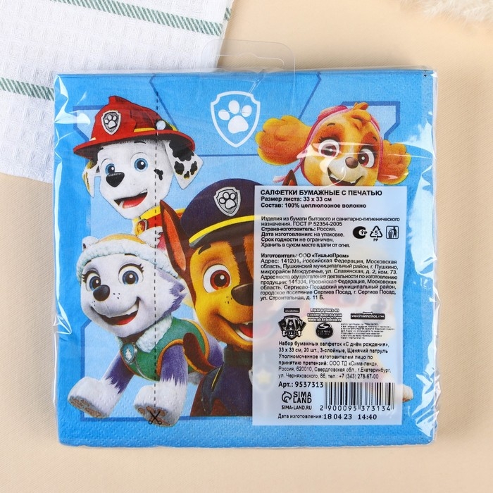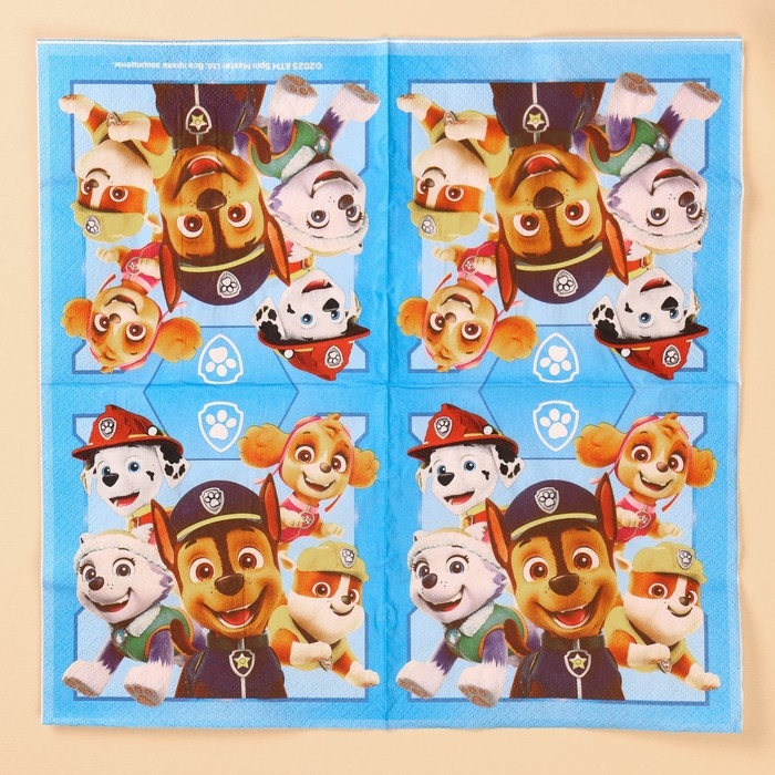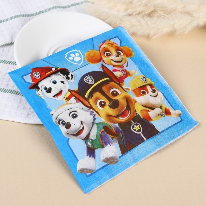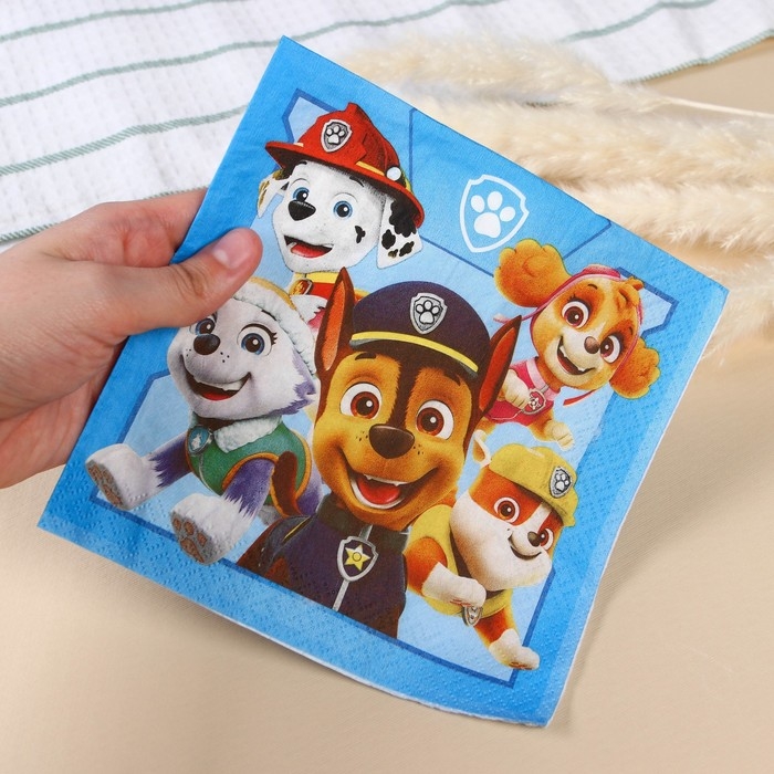 Салфетки бумажные, 33х33 см, 20 штук, 3-х слойные, Щенячий патруль