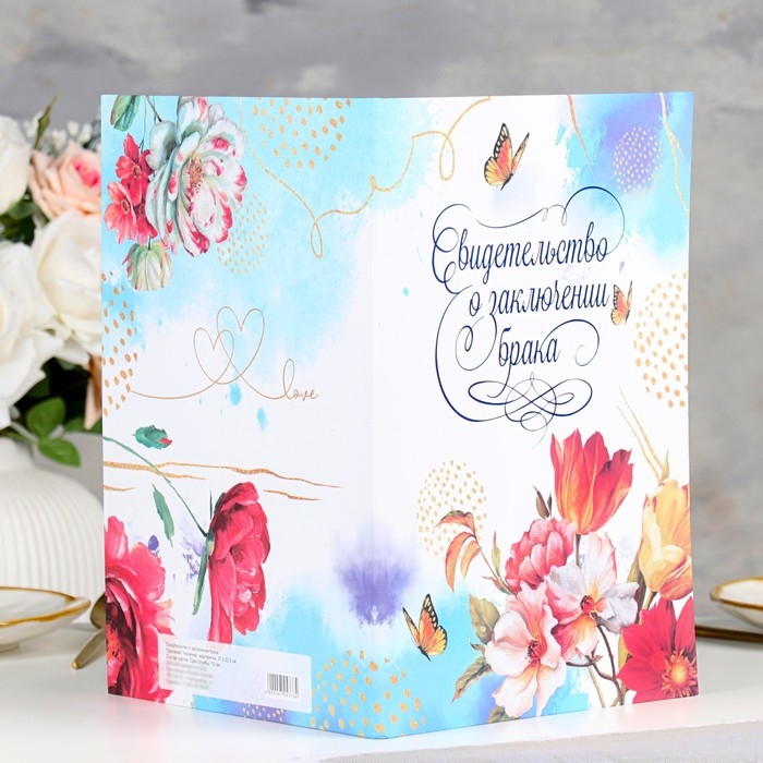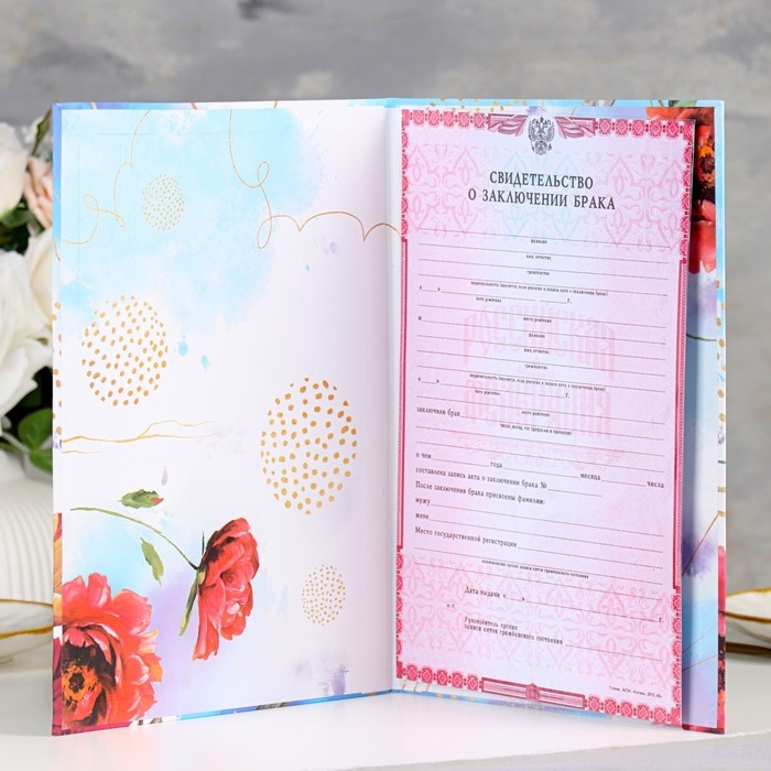 Свидетельство о заключении брака "Цветение" софт тач, тиснение, маргаритки, 31х22,5 см