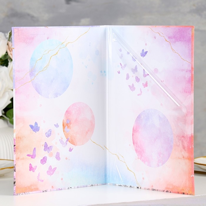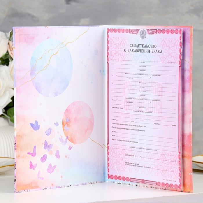 Свидетельство о заключении брака "Цветение" софт тач, тиснение, бабочки, 31х22,5 см
