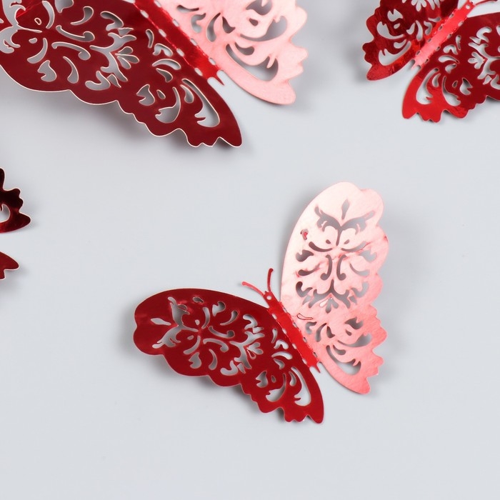 Наклейка пластик "Бабочки ажур, фуксия" набор 12 шт 12 см, 10 см 8 см