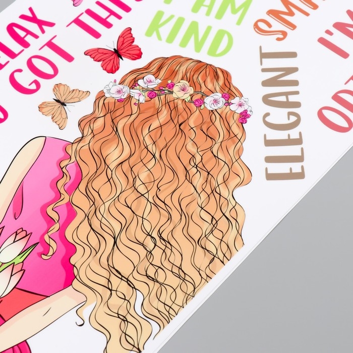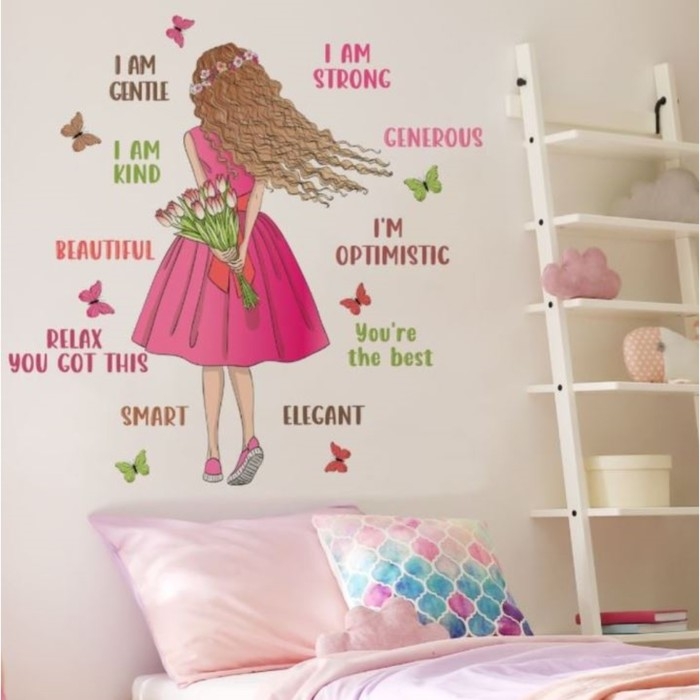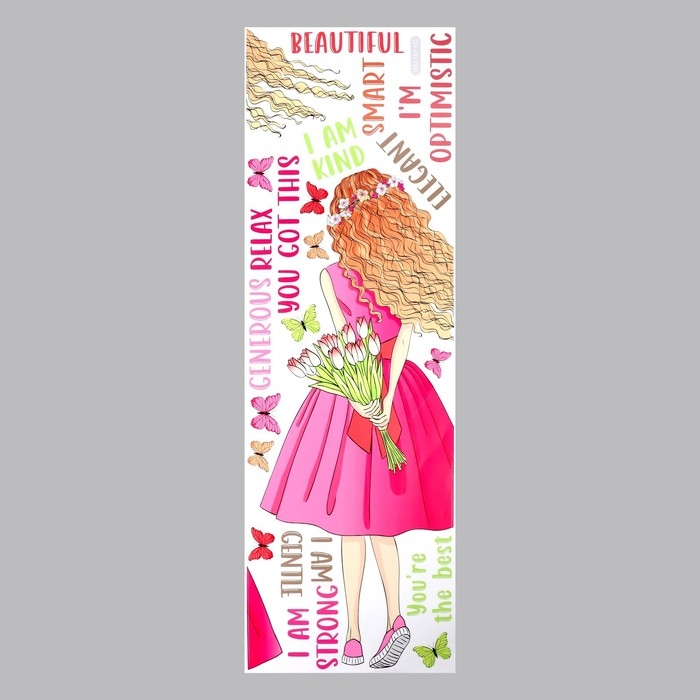 Наклейка пластик интерьерная цветная "Девушка с тюльпанами" 30х90 см