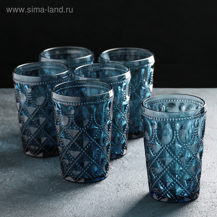 Набор стаканов стеклянных Magistro «Варьете», 465 мл, 8,5×14 см, 6 шт, цвет синий