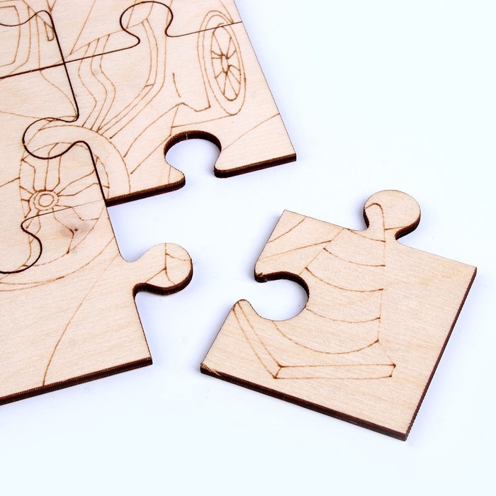 - В комплект входят деревянные пазлы, краски и кисточка, чтобы вы могли раскрасить каждую часть пазла по своему вкусу.