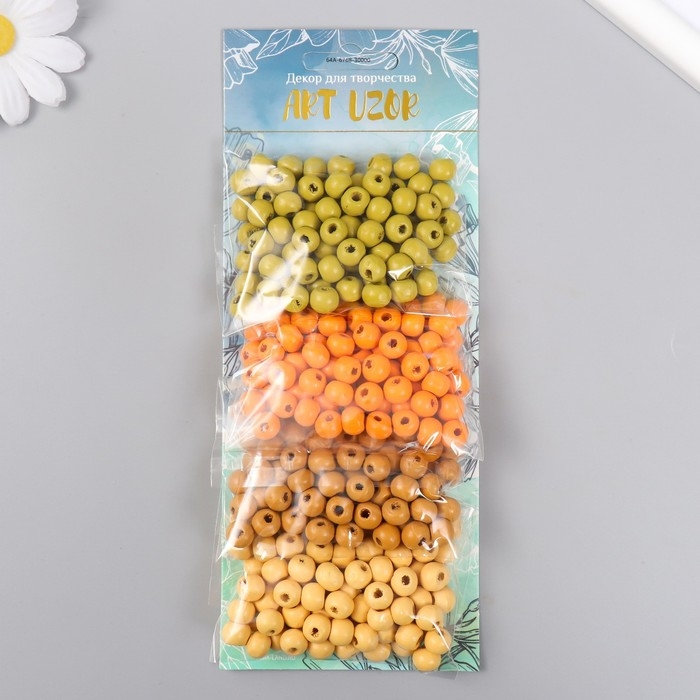 Набор бусины для творчества дерево "Горчица" d-0,8 см, 4 цвета х 15 гр