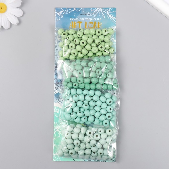 Набор бусины для творчества дерево "Мята" d-0,8 см, 4 цвета х 15 гр